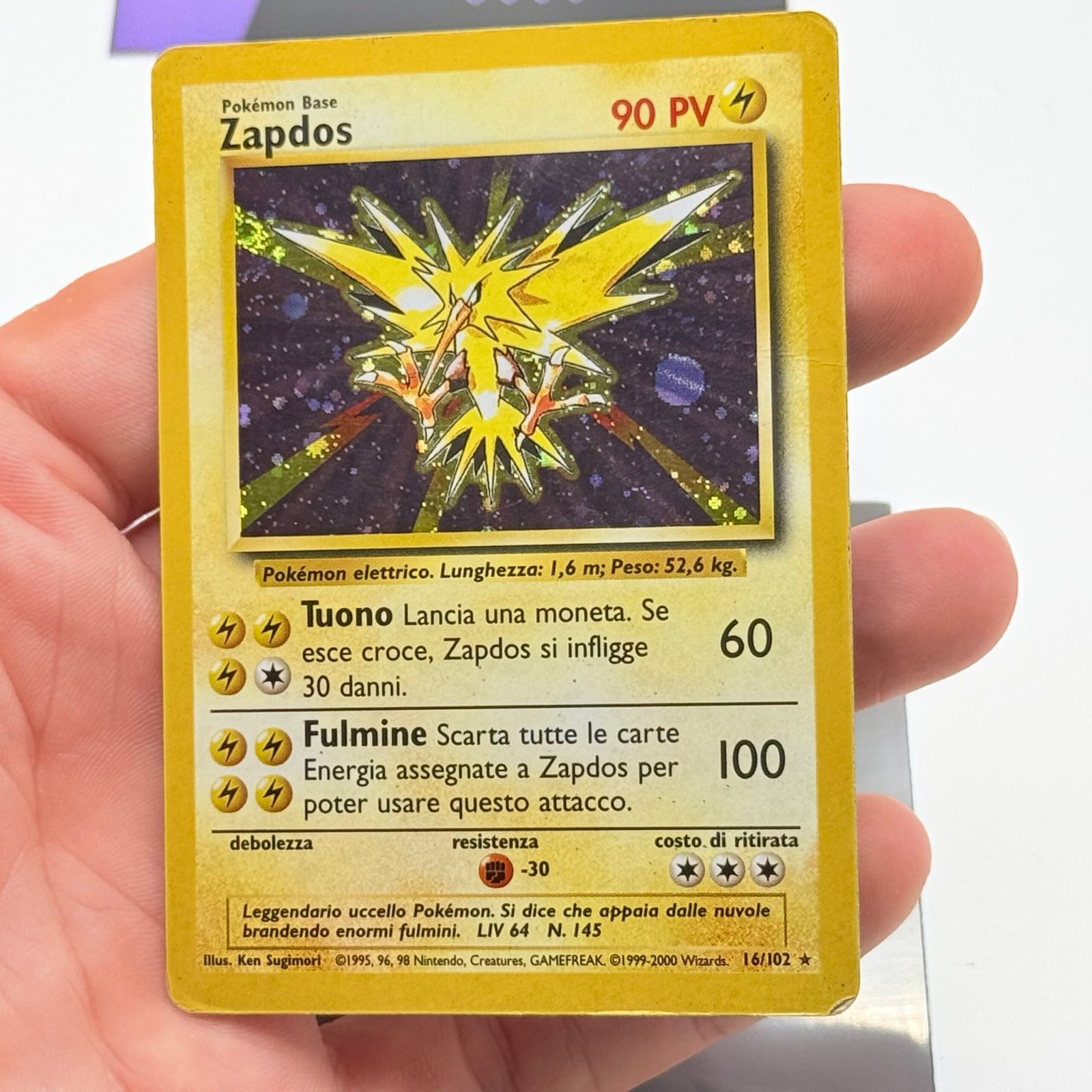 CARTA POKEMON CARD ZAPDOS HOLO 16/102 – ITA – SET BASE – PLAYED / POOR
