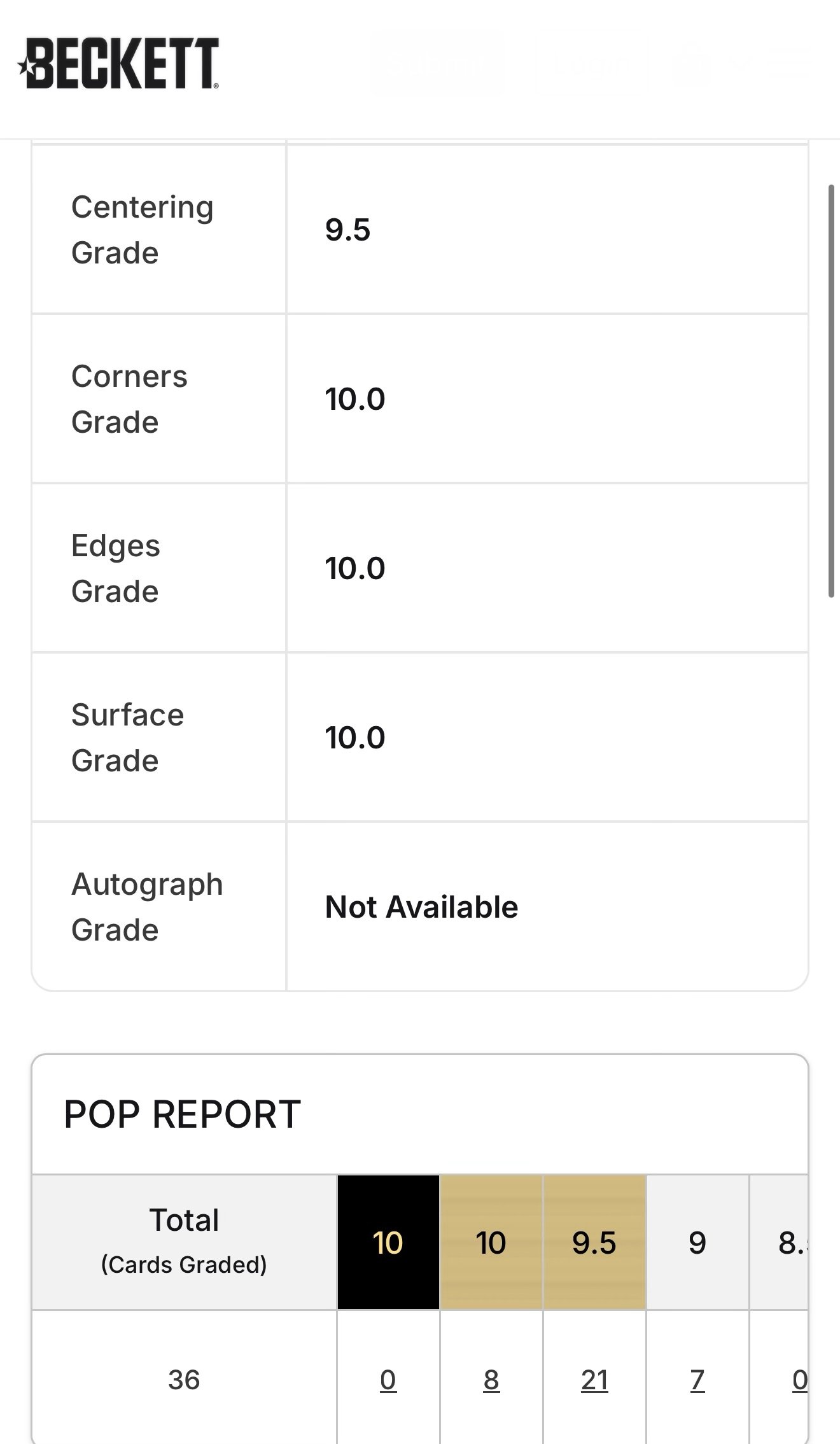 GRADATA DA BGS (BECKETT) CON VOTO