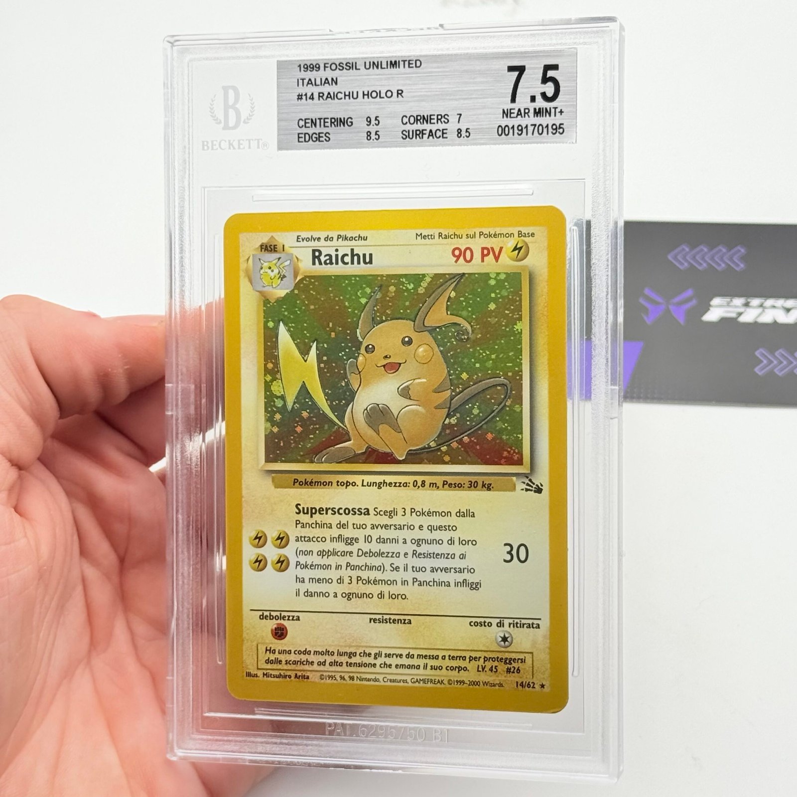 CARTA POKEMON RAICHU HOLO 14/62 – ITA – SET FOSSIL – BECKETT / BGS 7,5