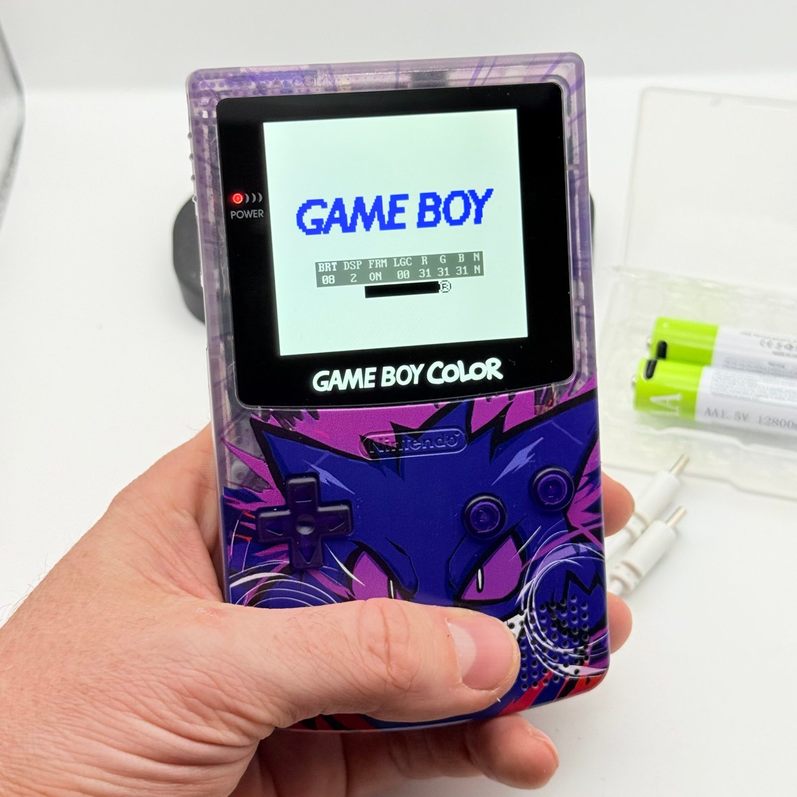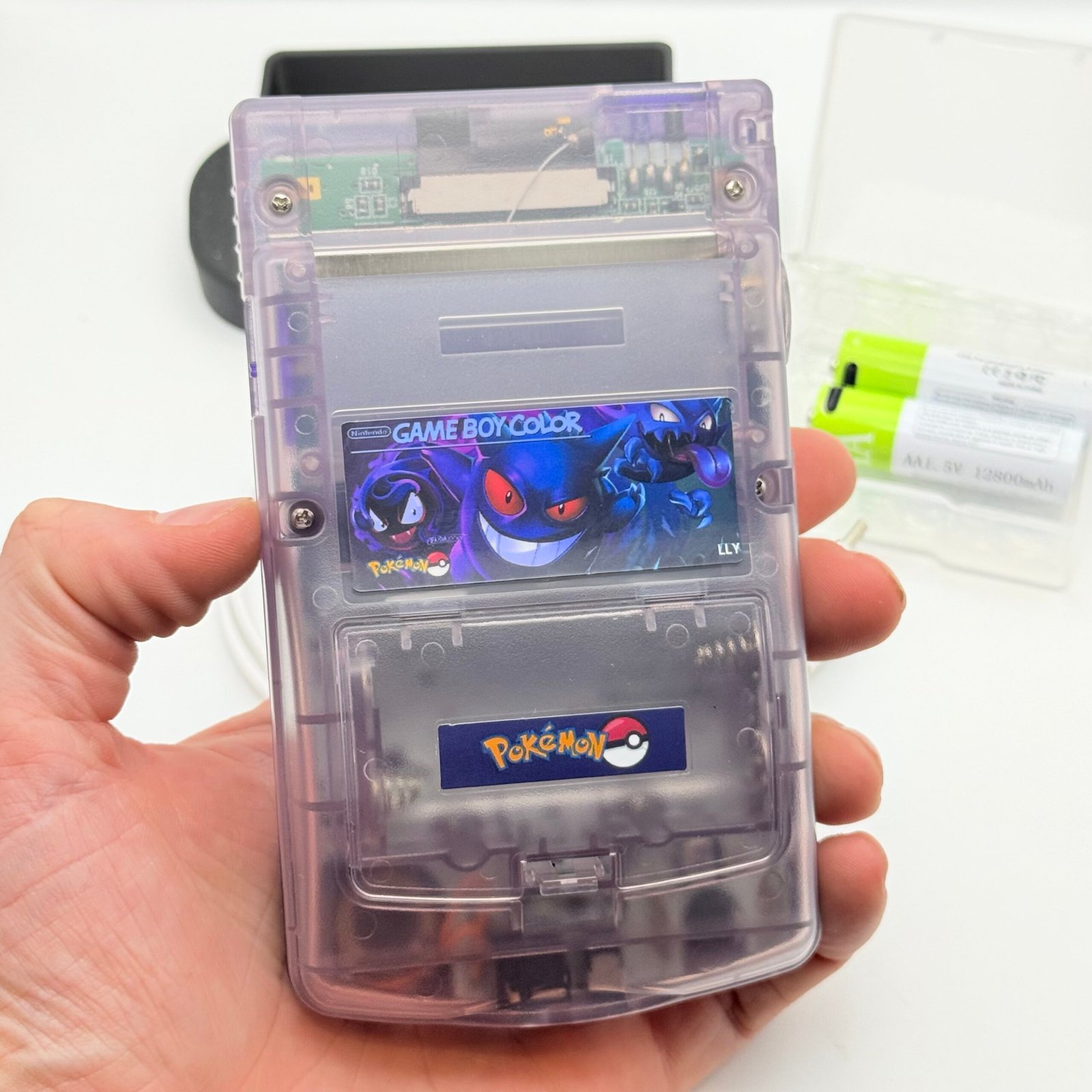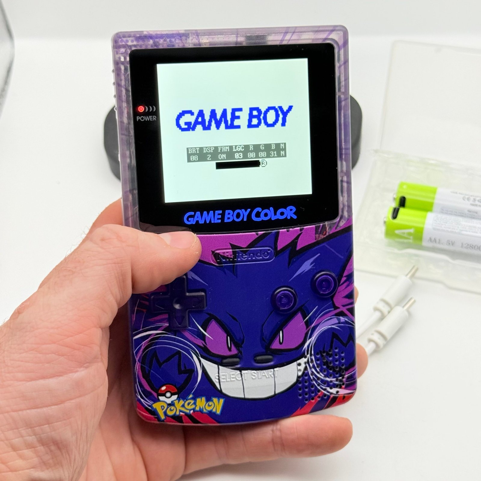 Game Boy Color – IPS V3 – Pokémon Gengar + Stand + 2 Batterie USB-c 12800mAh