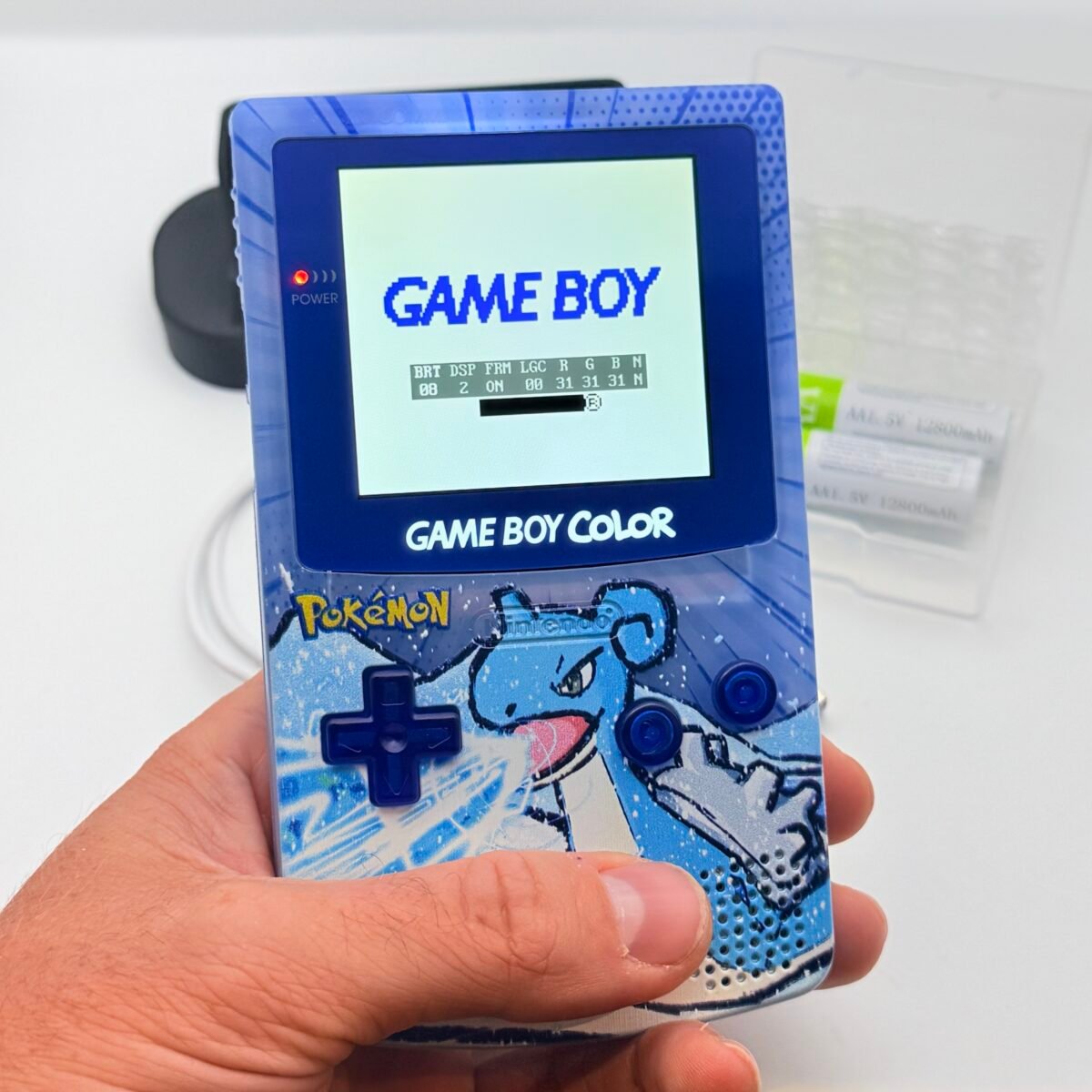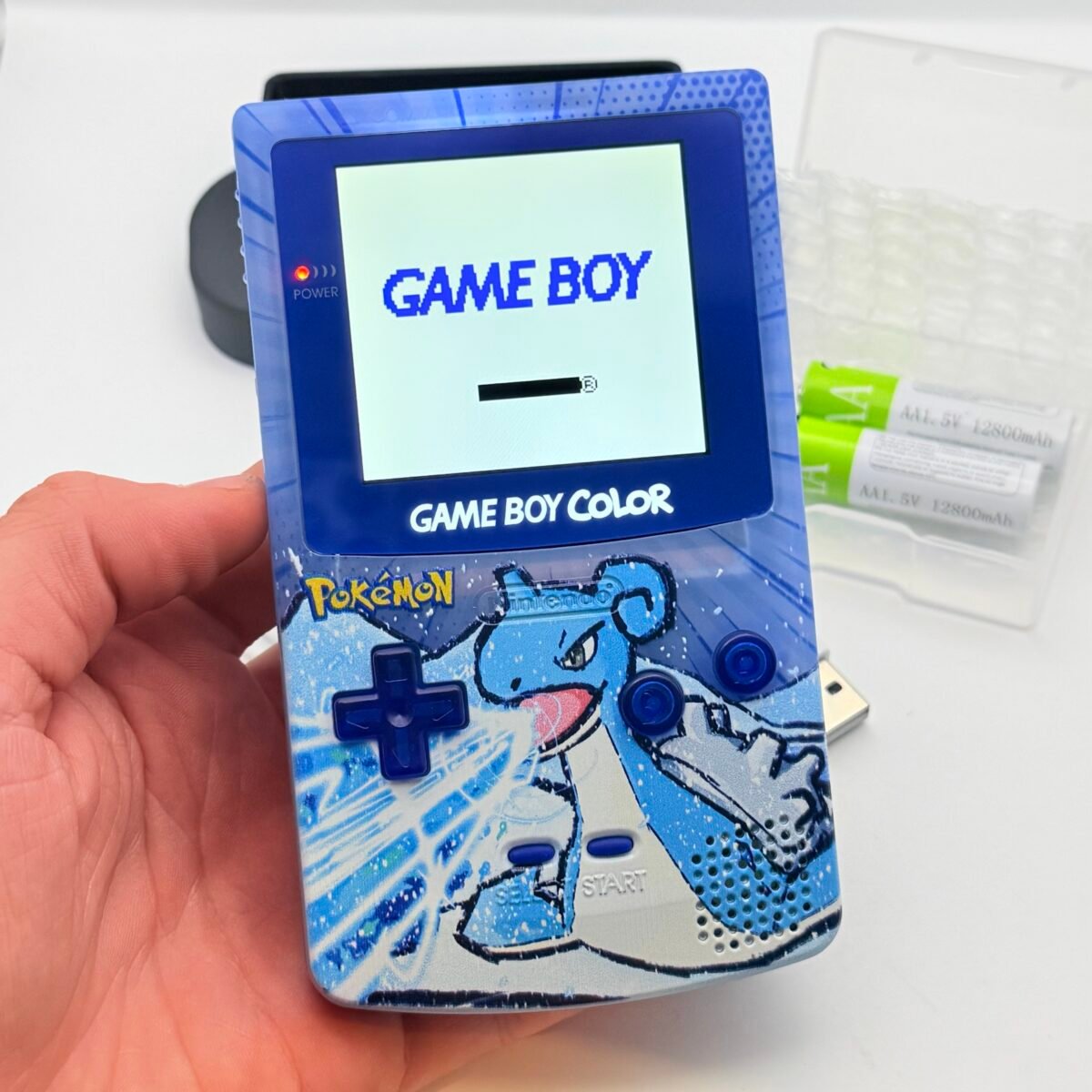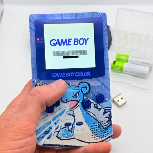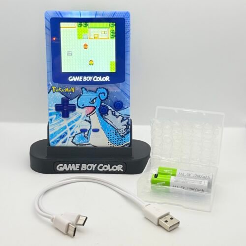 Game Boy Color – IPS V3 – Pokémon Lapras + Stand + 2 Batterie USB-c 12800mAh
