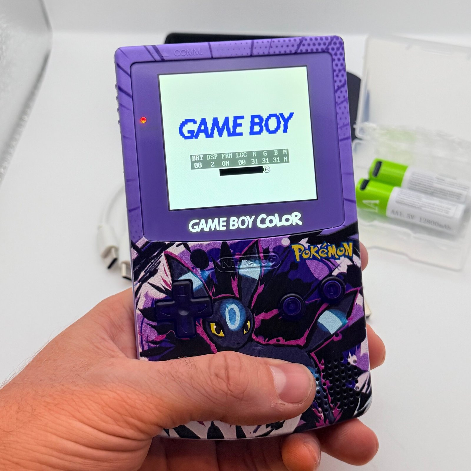 Game Boy Color – IPS V3 – Pokémon Umbreon Shiny + Stand + 2 Batterie USB-c 12800mAh