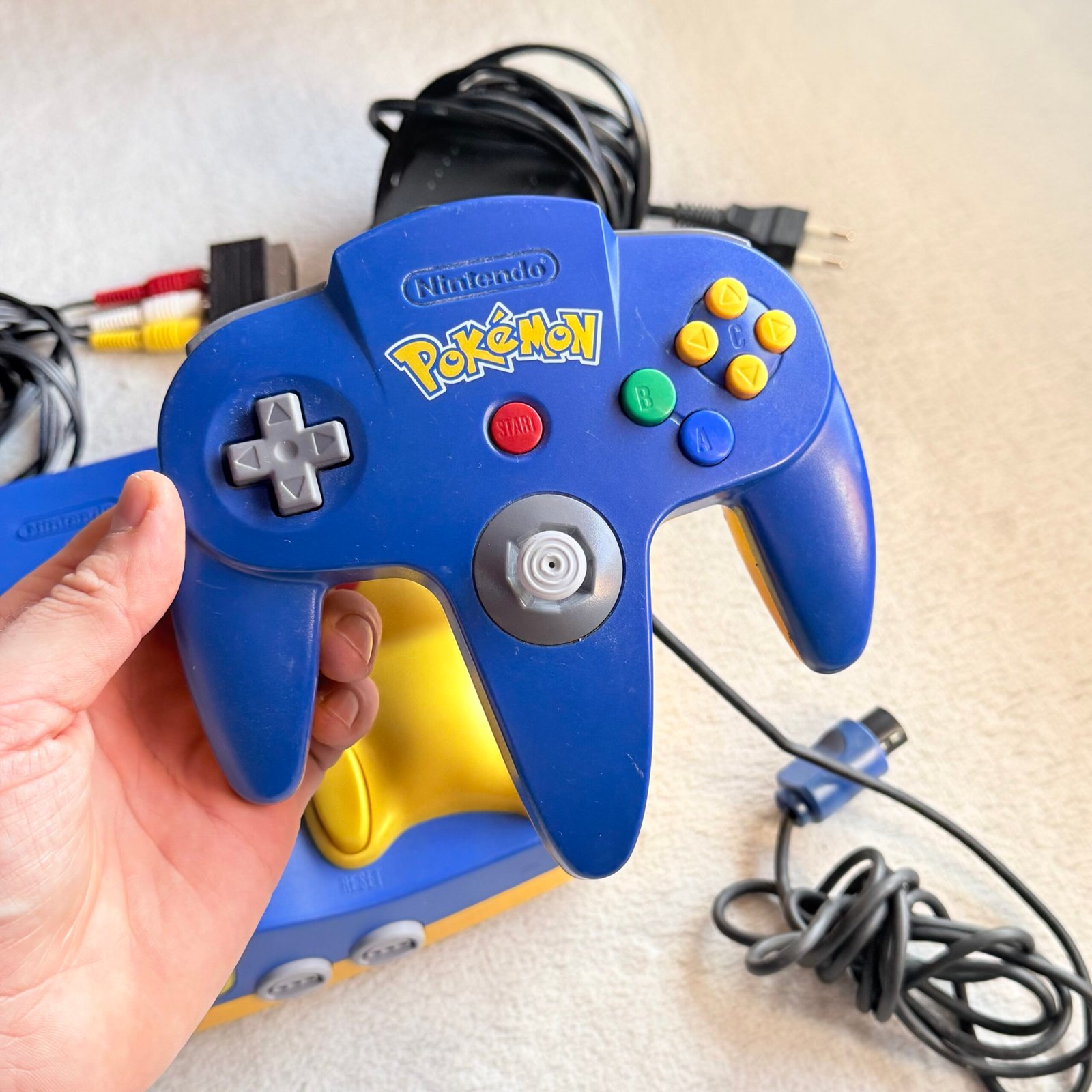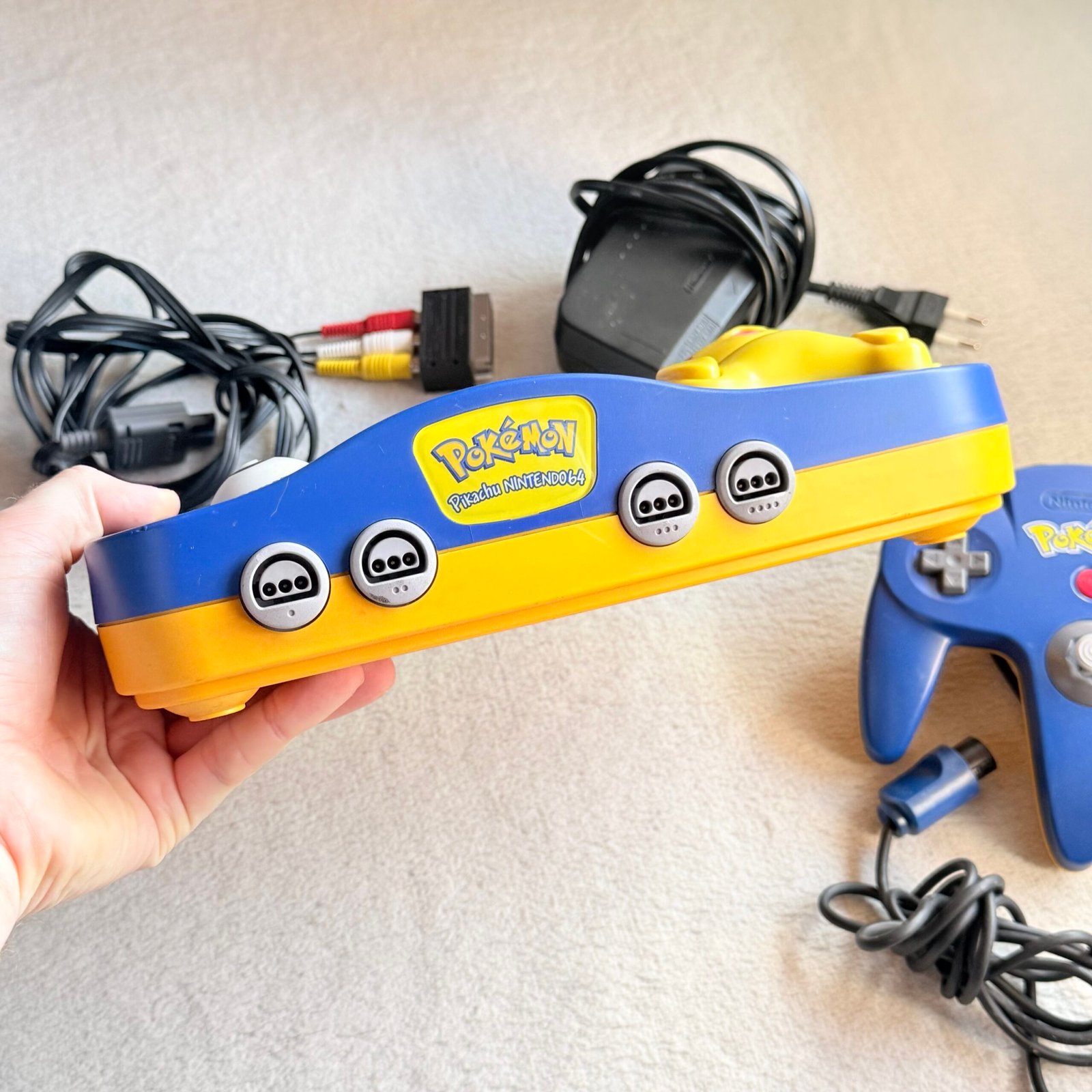 NINTENDO 64 (N64) LIMITED POKEMON PIKACHU + JOYSTICK + CAVI – 100% ORIGINALE
