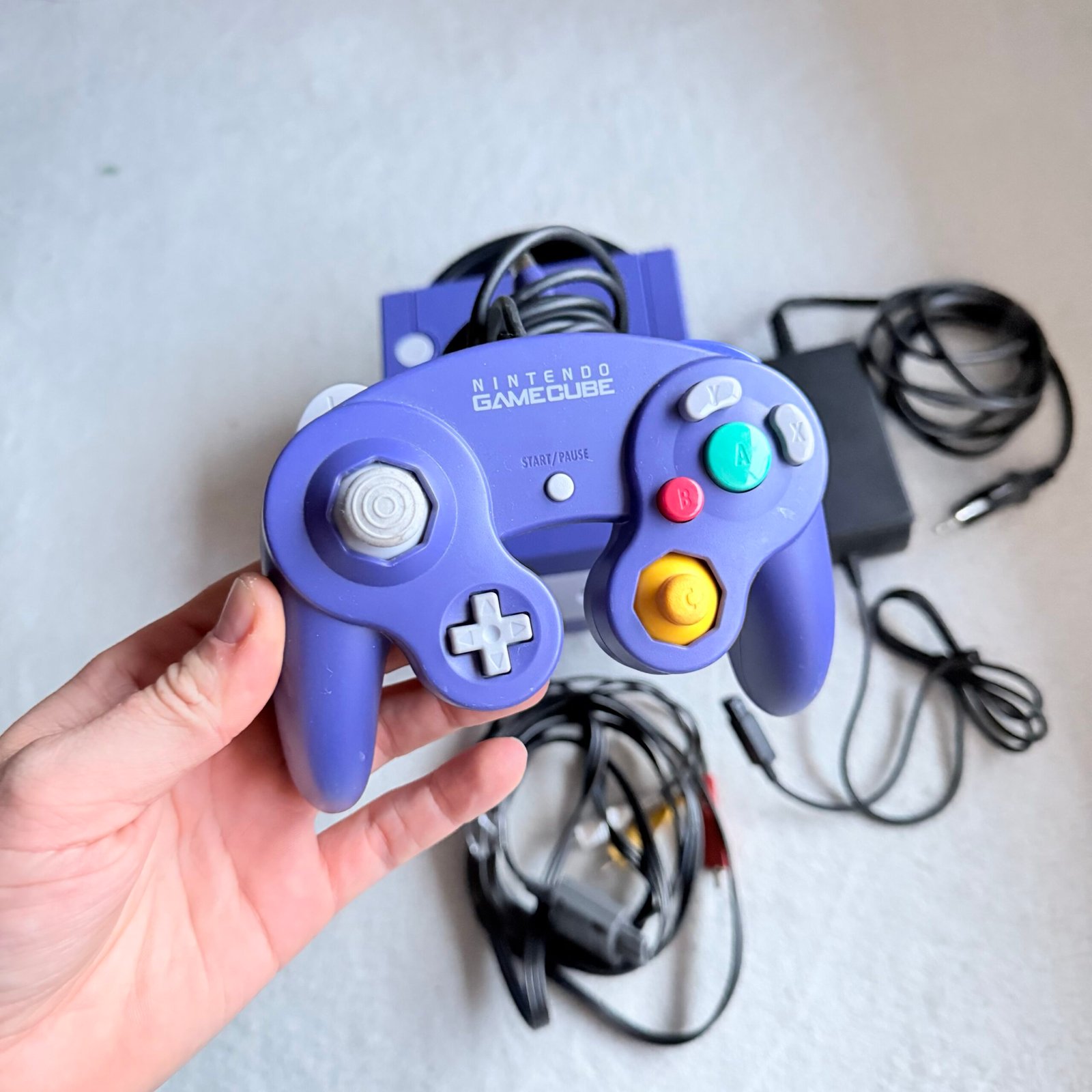 NINTENDO GAMECUBE VIOLA + JOYPAD + CAVI – TUTTO AL 100% ORIGINALE E FUNZIONANTE